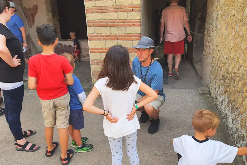 Led by our expert kid-friendly guide, embark on a journey through the centuries as you explore the archeological wonders of this remarkable site. Through interactive activities like quizzes and games, both you and your children will delve into the tragic history of Herculaneum and its inhabitants, fostering discussions and keeping even the youngest visitors engaged.